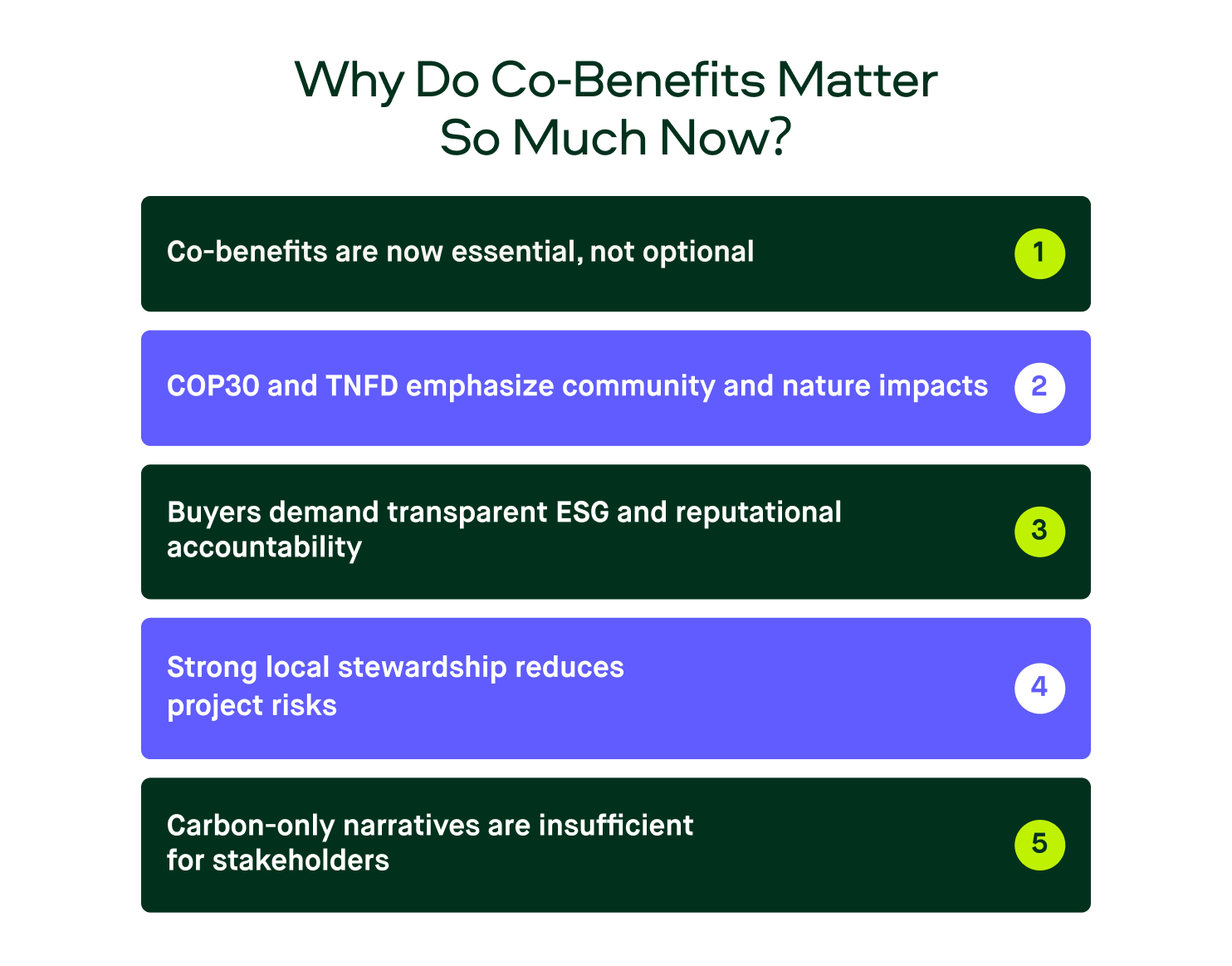 Several forces have converged to elevate carbon credit co-benefits from "nice to have" to "must have."