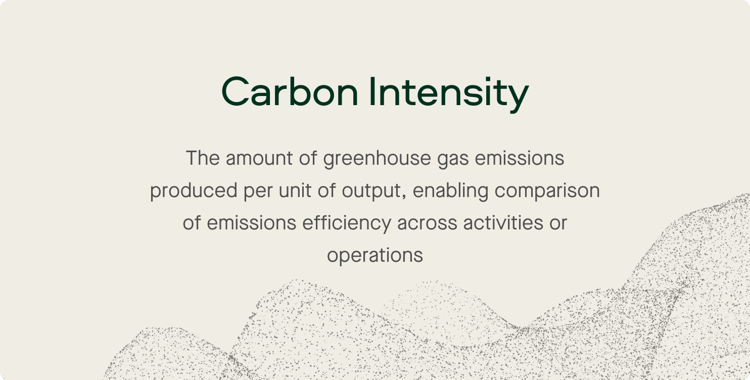 Unlike total carbon emissions, which measure absolute environmental impact, carbon intensity provides a comparative lens. A facility might have a large carbon footprint because it operates at scale. Another might have a smaller carbon footprint, but be less efficient per unit produced. Carbon intensity reveals this difference, and as stated above, allows decision makers to make better decisions.