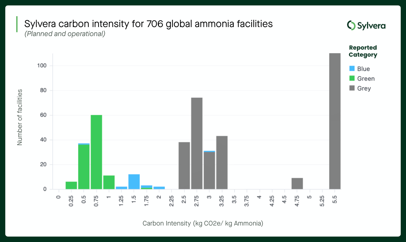 The emissions spread between the worst and best performers for a commodity can be significant. For example, for ammonia facilities, you can see a spread in carbon intensity calculated using Sylvera’s framework from 0.25 to 5.5 kgCO2e/kg ammonia. If we disadvantage marginal worst emitters enough to drive improvement or closure, we trigger rapid, system-wide decarbonization.