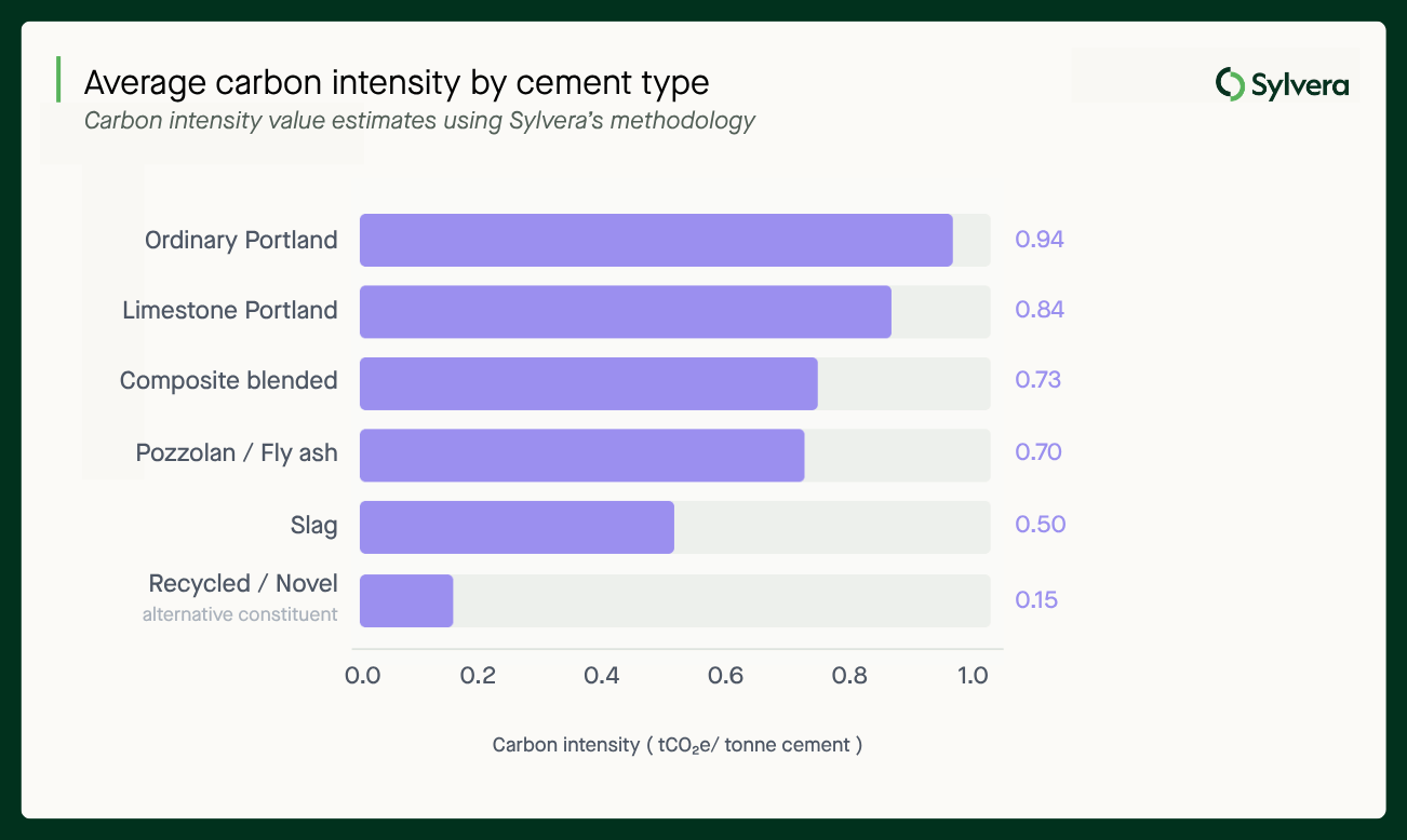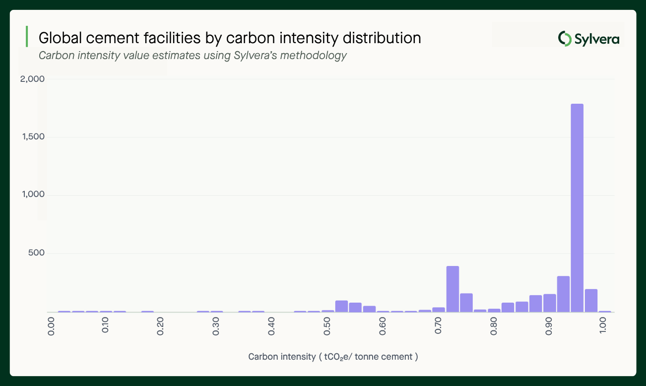 The lowest-carbon facilities in Sylvera's dataset are predominantly those using alternative cement types and production methods: