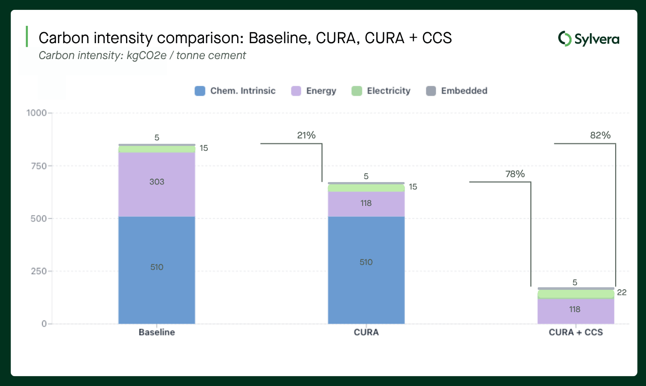 Sylvera's work across carbon credit and commodity markets provides the independent credibility that buyers and investors require. And Sylvera's Cement Framework, benchmarking the carbon intensity of 3,165+ plants globally, offered something no standalone LCA report could: a clear, apples-to-apples comparison of where CURA sits relative to the market.