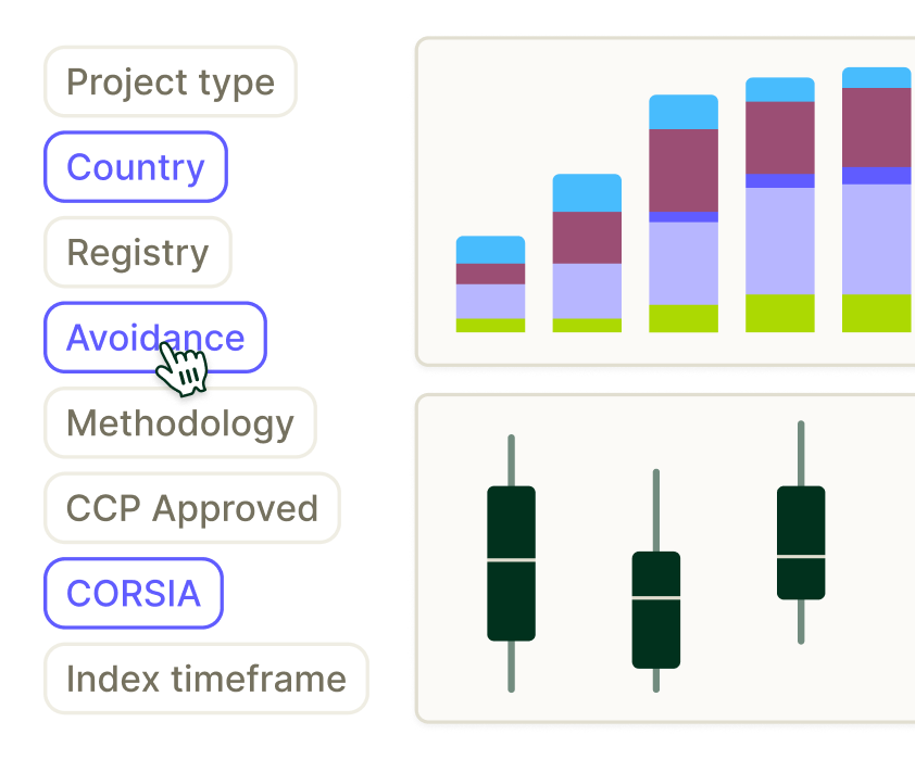 過去の買い手動向、リアルタイムの市場データ、シナリオに基づく予測を組み合わせることで、炭素市場の過去、現在、そして未来を理解します。