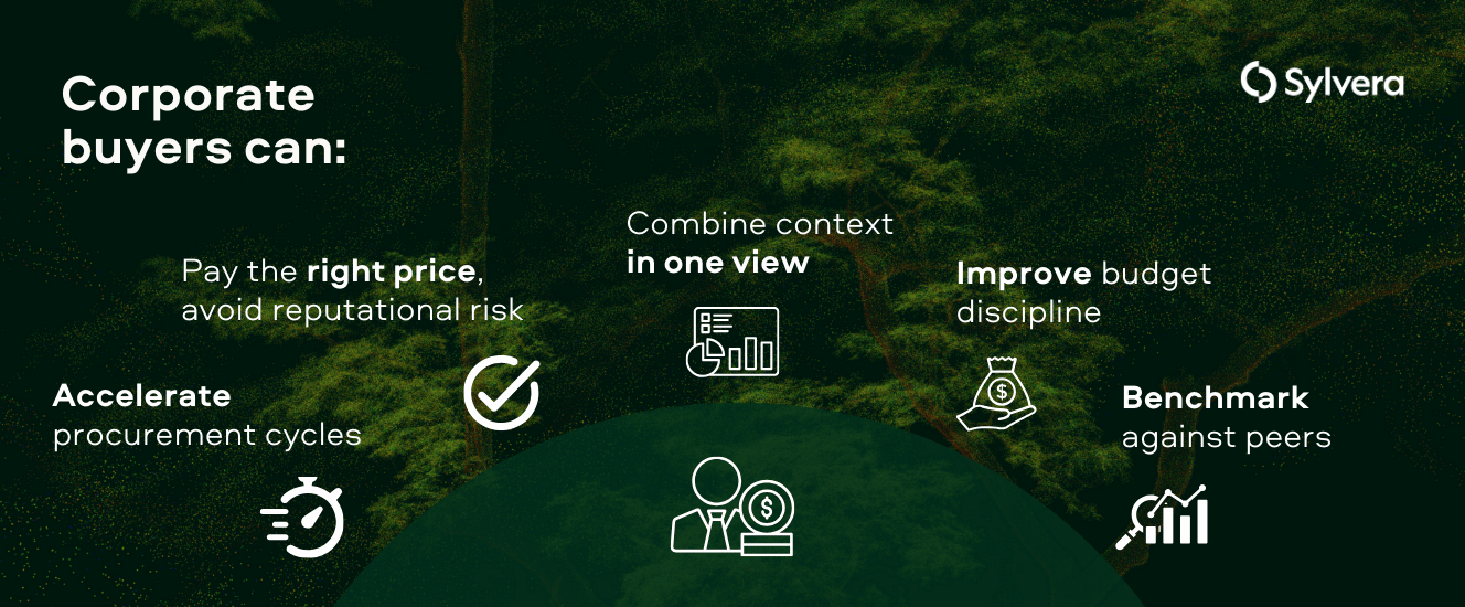 Sylvera Market Intelligence addresses this by unifying prices, real buyer activity, integrity signals, and policy context into a single workspace designed for actionable decision-making.